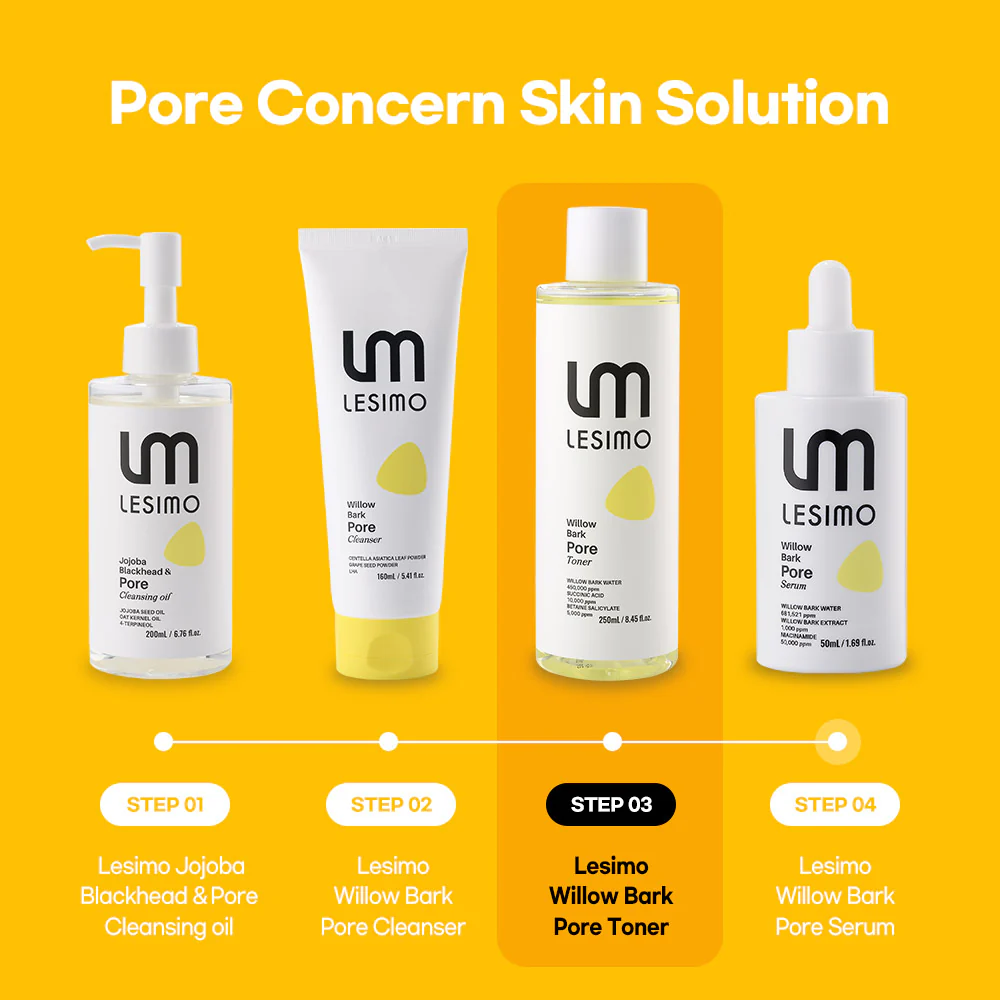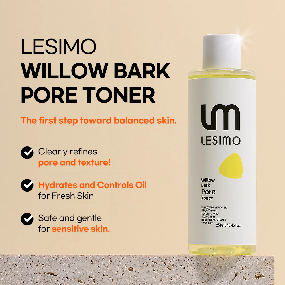 Optimize your skincare with Lesimo Willow Bark Pore Toner — the essential pore refining and oil control toner for smooth, clear, and balanced skin every day.