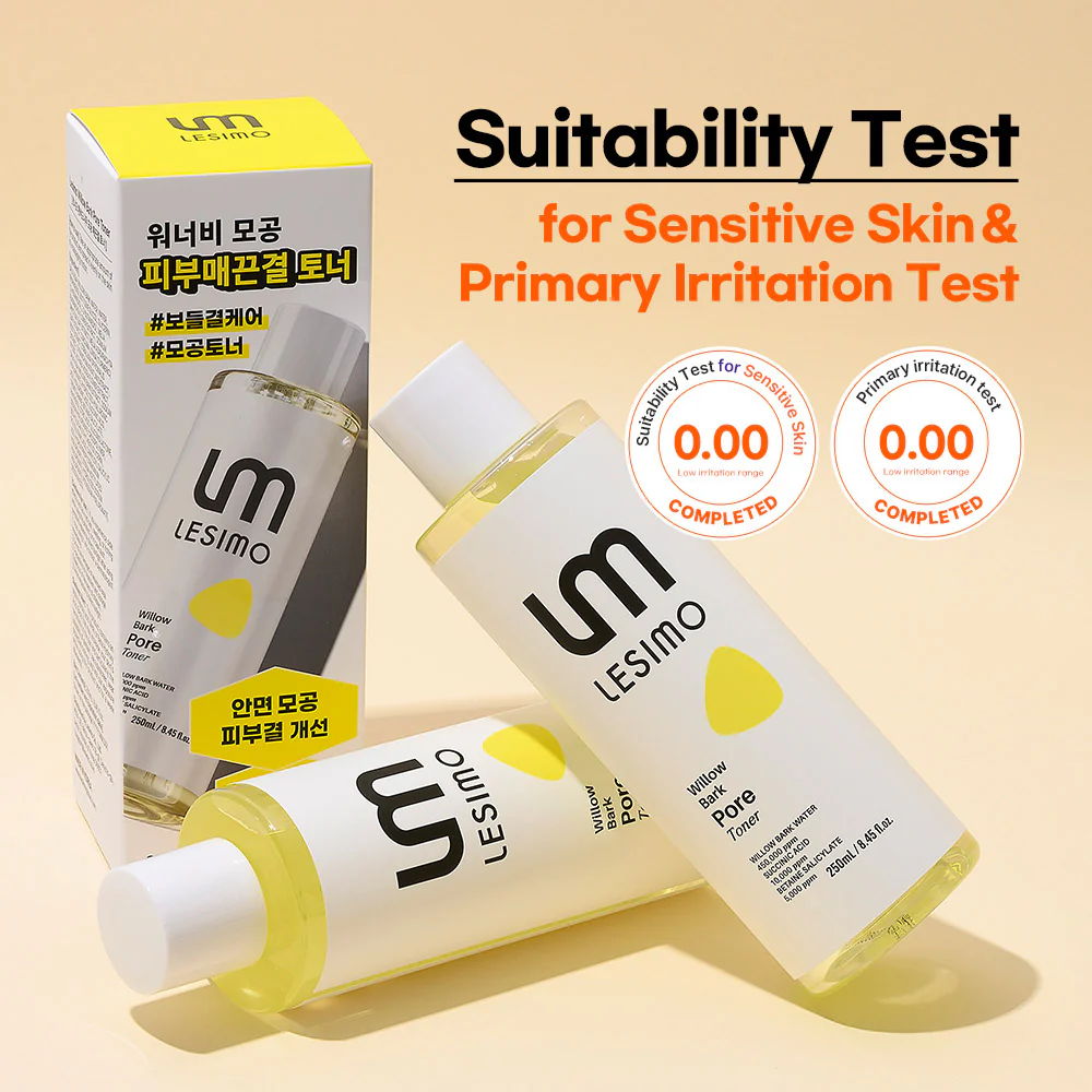 Lesimo Willow Bark Pore Toner has undergone rigorous clinical testing confirming its ability to reduce pore size, refine skin texture, and control excess oil. With a 0.00 irritation score in sensitive skin tests, it is a hypoallergenic sensitive skin toner safe for everyday use.