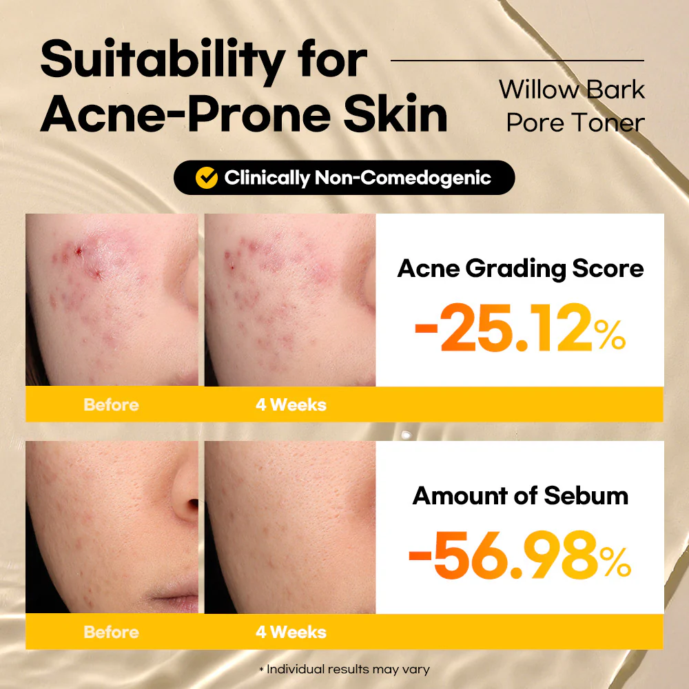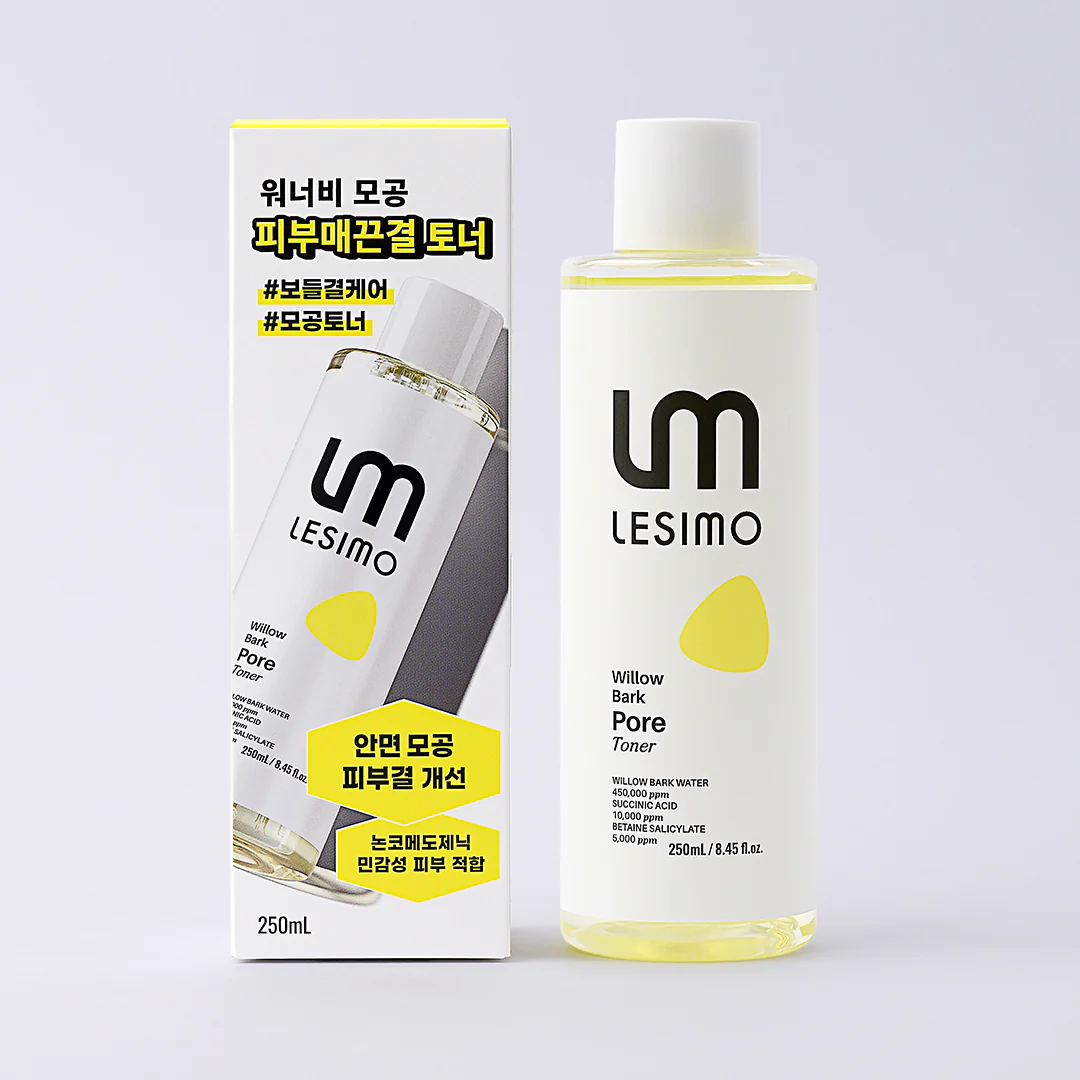 Lesimo Willow Bark Pore Toner is a highly effective pore tightening toner specially formulated with natural Willow Bark Water, Willow Bark Extract, and Succinic Acid to deeply cleanse and refine pores, control excess oil, and improve overall skin texture. This gentle yet powerful oil control toner is clinically proven to minimize the appearance of enlarged pores, reduce sebum production, and smooth rough skin — making it ideal for oily, combination, and acne-prone skin types.